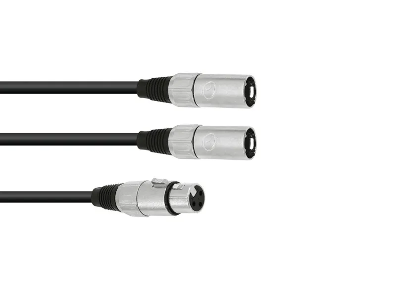 Kabel XFMM-30 – Y-kabel/rozdělovací kabel. XLR-samice/ 2x XLR samec, přemostěný. Ideální pro rozdělení signálu. Délka 3 metry.