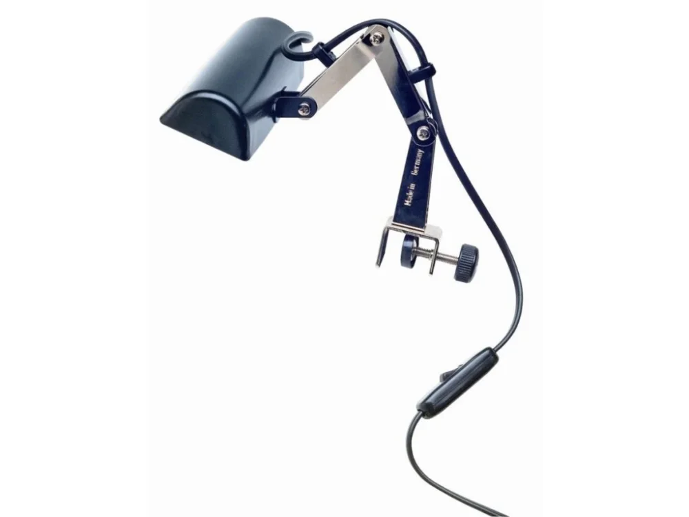 Lehká kompaktní lampička na noty na klasickou žárovku. Provoz pouze na 230V (kabel s vypínačem, délka 2m). Výkon do 25W. (1ks žárovka jesoučástí balení). Pevná kovová konstrukce s jednoduchým systémem našroubování ideálním na pultík piána, nebo na notový stojánek.
