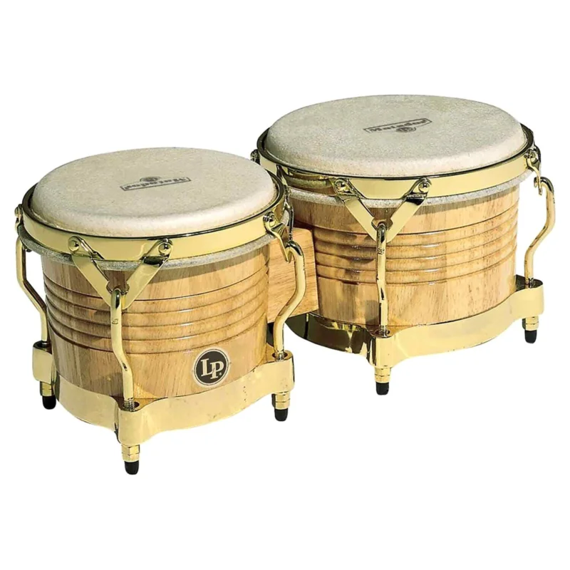 Dřevěná bonga Latin Percussion z řady Matador. Bonga LP Matador jsou ideální volbou pro každého hudebníka, který hledá tradiční styl a profesionální zvuk za dostupnou cenu. Jsou vyrobena ze siamského dubu (Hevea brasiliensis). Mají tradiční průměry 7,25″ a 8,625″, blány jsou z výběrové přírodní kůže. Ráfky jsou tradičního typu. Ladicí šrouby o průměru 8 mm. Spodek korpusů je vyroben z litého aluminia. Model M201-AW má hardware zlaté barvy, povrchová úprava Natural (přírodní dřevo).