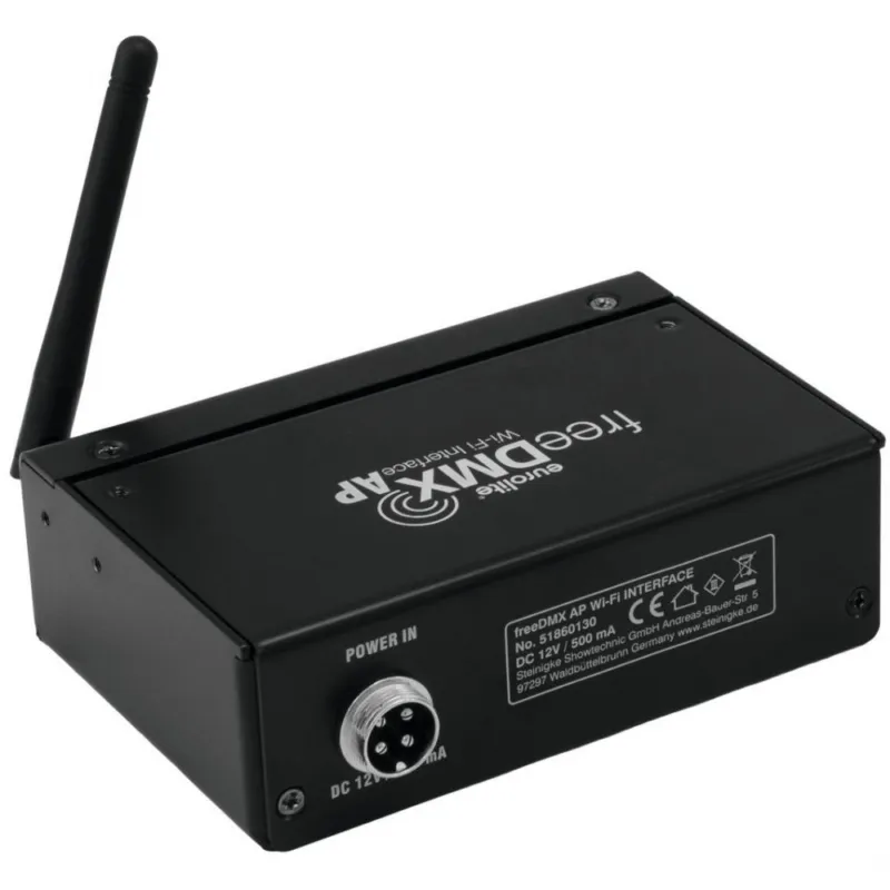 Bezdrátové DMX rozhraní pro ovládání světel pomocí chytrého telefonu či tabletu. Přijímá ovládací signály přes síť a převádí je do DMX signálu. Pracuje s iPhony, iPady a Android tablety. Ovládejte vaše DMX zařízení pohodlněji než kdykoliv předtím s aplikací LIGHTJ nebo Light Captain. LIGHTJ nyní také podporuje DMX zařízení všech ostatních výrobců. Knihovna světelných produktů v aplikaci je průběžně doplňována a nyní obsahuje přes 300 zařízení Eurolite a Futurelight. Jednoduše můžete přidat nové zařízení přes vstupní editor. Aplikace LIGHTJ je zdarma ke stažení z Play store a App store a je optimalizována pro tablety od 7″. Lze ji nastavovat přes integrovaný webserver. WLAN standard IEEE802.11 b/g/n. Neutrik 3-pin XLR konektory pro DMX IN / DMX OUT. Schopnost DMX feed-through. Indikační LED diody pro zobrazení stavu, připojení a zapnutí aplikace. Napájení přibaleným adaptérem. Pracuje s programem FreeStyler verze 3.6.32 (Windows PC) a novější. Vyrobeno v Německu. Pro názornost se podívejte na naše video.