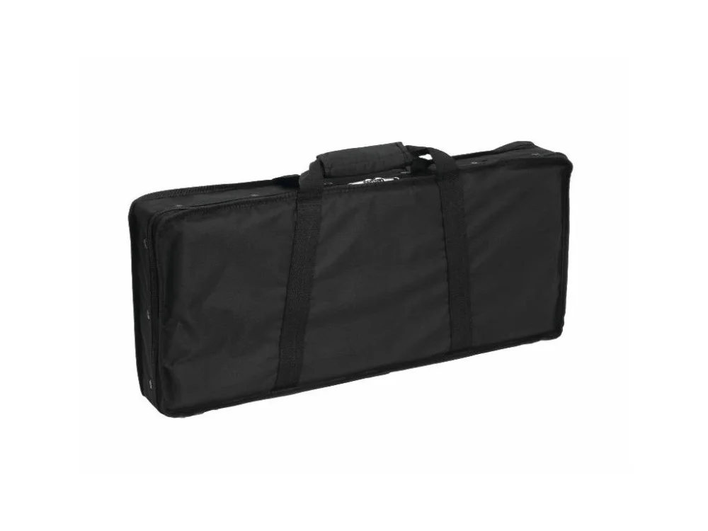 Černá polstrovaná přepravní taška pro 4 AKKU LED bodové reflektory Eurolite (41700620 a 41700600). Zabudovaná nabíječka pro všechna 4 svítidla, polstrovaný vnitřek tašky a přihrádka pro příslušenství.