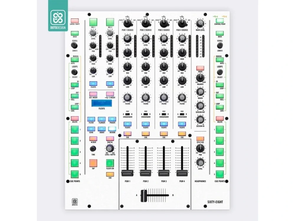 Nalepovací skin pro mixážní pult Rane Sixty-Eight 68 v provedení FULL COLORS, barva white (bílá).