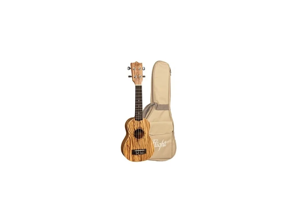 Sopránové ukulele od firmy Flight má přední desku, zadní deska i luby vyrobené z exotického dřeva Zebrawood. Ze stejného materiálu je i dýha nalepená na hlavě nástroje. Logo výrobce a veškerá ozdobná grafika je vypálená laserem. Mahagonový krk je opatřen palisandrovým hmatníkem a ze stejného materiálu je vyrobena i kobylka. K ladění nástroje slouží přesná olejová mechanika.