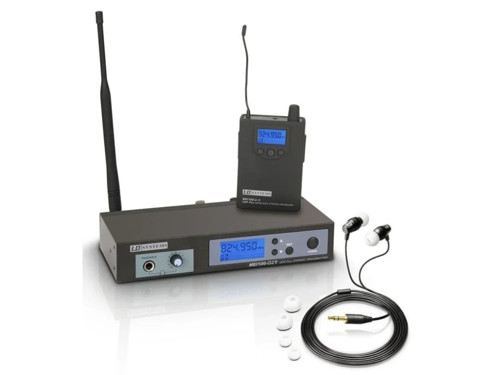 MEI 100 G2 od DL Systems je odposlechový In-Ear systém s 96 UHF kanály. Disponuje čistým a transparentním zvukem i obrovským frekvenčním rozpětím od 823 – 832 a od 863 – 865 MHz. Toto zařízení je schopné operovat v mono i stereo režimu, což ho dělá vhodným pro muzikanty, herce i například moderátory. Vestavěný limiter se postará o to, aby zvuk nebyl zkreslený a naopak byl maximálně frekvenčně vyvážený. Toto zařízení navíc umožňuje simultánní operaci až 5 systémů najednou. Vysílač i přijímač jsou opatřeny displayem, na kterém najdete veškeré podstatné informace a s kvalitními bateriemi bude receiver fungovat déle než 8 hodin.