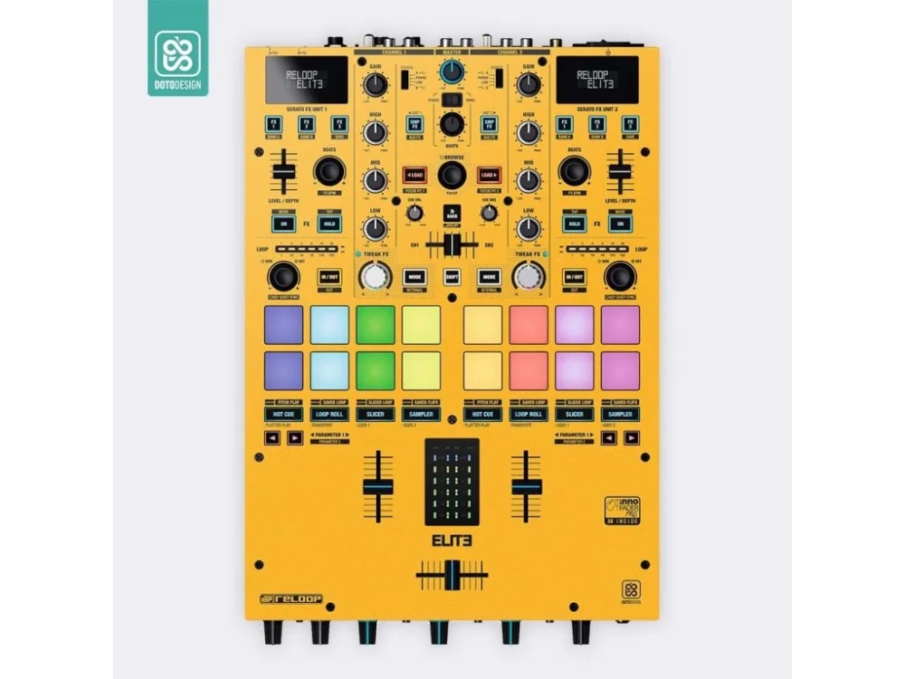 Nalepovací skin pro mixážní pult Reloop Elite v provedení FULL COLORS, barva dark yellow (tmavě žlutá).