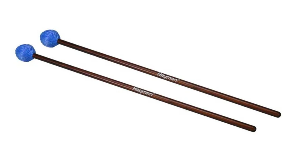 Marimba paličky, 425 mm, ratanová rukojeť, pár, 33 mm, měkká hlavička, v modré barvě