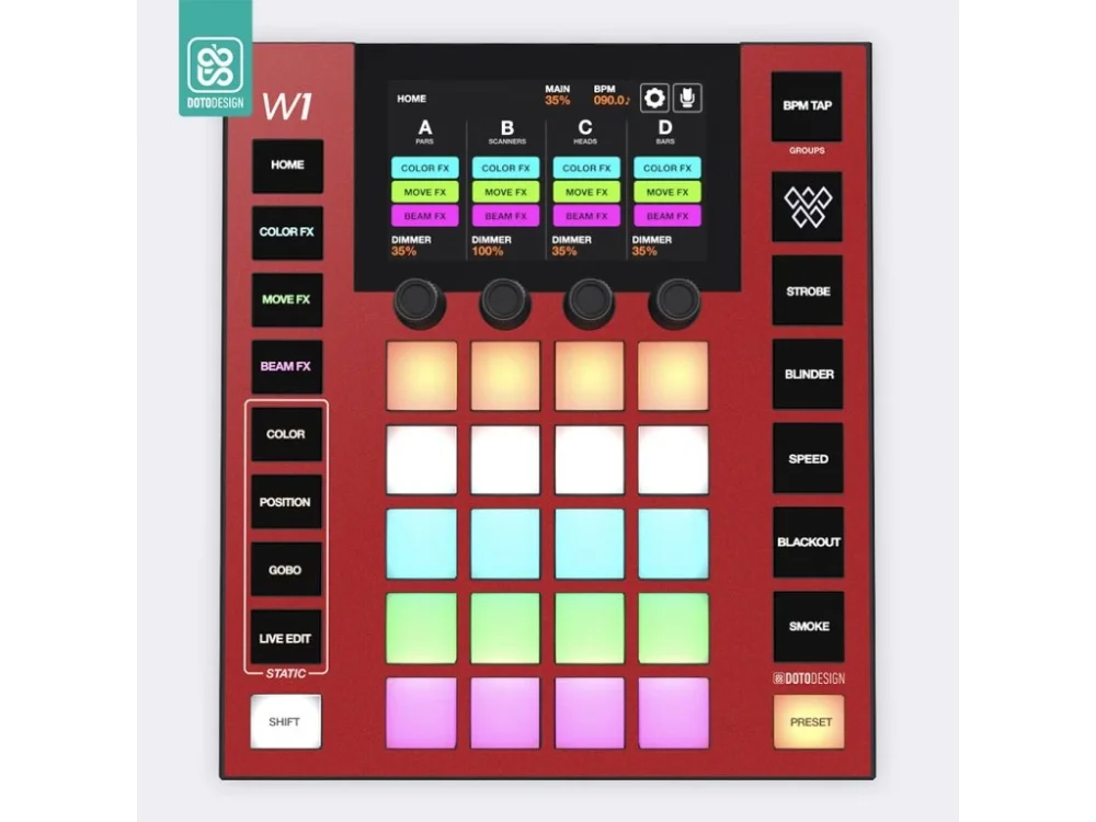 Nalepovací skin pro DMX ovládací pult Wolfmix W1 (MK1 / MK2) v provedení FULL COLORS, barva aurora red (červená).
