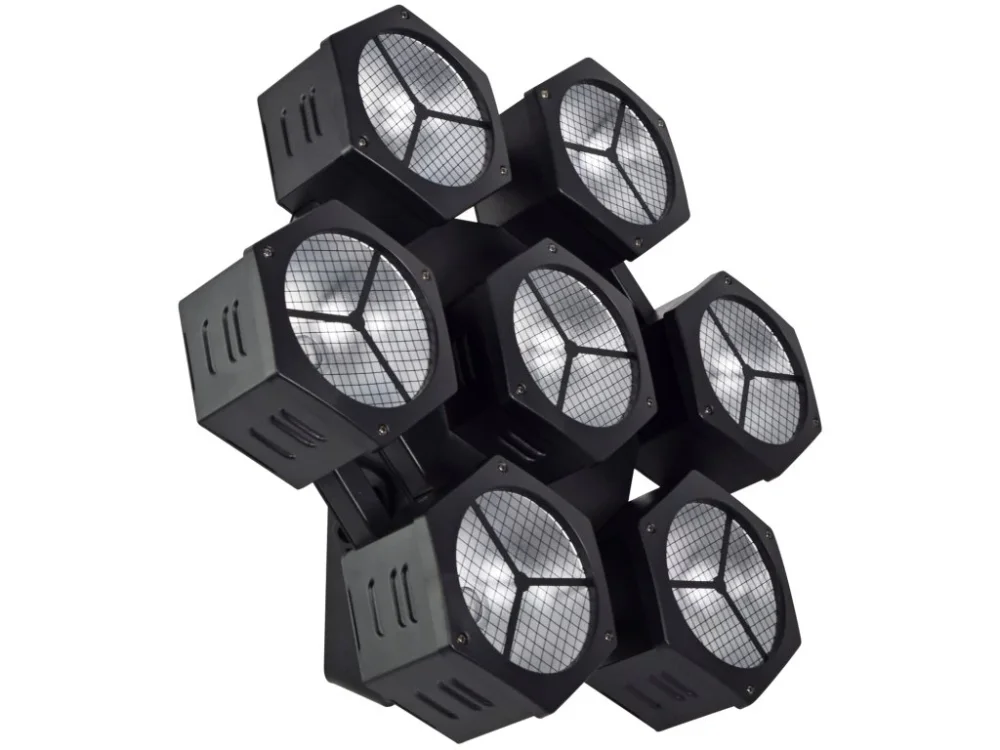 Odolné PAR světlo v retro stylu, vybavené 7 jasnými 40W RGBW COB LED, které produkují širokou škálu barev, vzorů a efektů, které přitahují pozornost. Jednotka může být řízena automatickými, zvukovými programy, master/slave programy nebo přes 6/9/21/30 kanálové DMX, pokud je požadováno přesnější ovládání. Při připojení k více jednotkám vytváří úžasnou stěnu zářivých barev, ideální pro pozadí jeviště a větší akce.Atraktivní design sněhových vloček v retro styluNapájeno 7 jasnými 40W RGBW COB LED diodamiInterní automatické, zvukem aktivované a statické programy6, 9, 21 a 30 kanálů kompatibilní s DMX-512Ideální pro jevištní pozadí a větší akceMůže být samostatně stojící nebo na konstrukci, stěnu nebo strop pomocí dodaných upevňovacích prvků nebo namontovaný na standardní reproduktorový stojan pomocí SA853243 (není součástí dodávky)