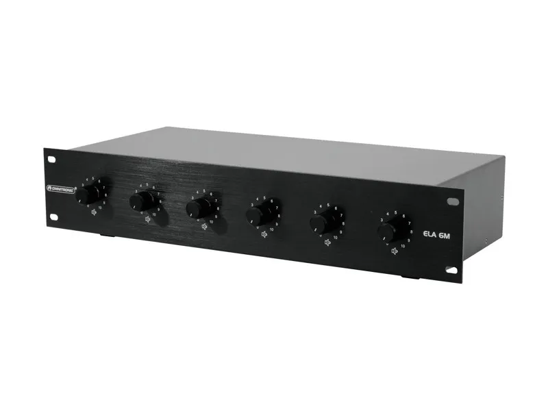 6-ti zónový PA ovladač hlasitosti s 24V nouzovými prioritními relé, vhodný pro 100V audio techniku, útlum v 10 krocích, 6 vestavěných 24V nouzových prioritních relé, hliníkový přední panel, šroubovací připojení, konstrukce (19″) 48,3 cm pro instalaci do racku 2U.