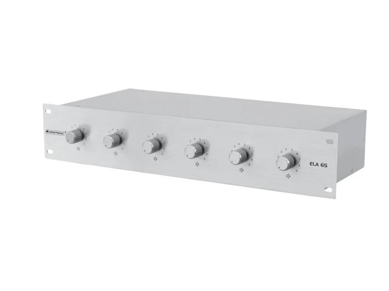 Stereo ovladač hlasitosti pro 6 zón, 4 ohmový vstup stereo zesilovače a 4 ohmový stereo reproduktorový výstup na zónu, útlum v 10 krocích, hliníkový přední panel, šroubové připojení, pro (19″) 48,3 cm instalaci do racku 2 U.