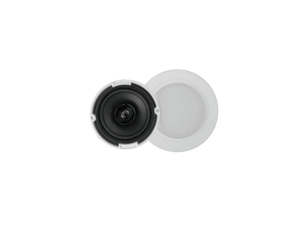 2-pásmový koaxiální reproduktor pro provoz 100 V se 2 napájecími odbočkami. Vysoce kvalitní plastové pouzdro (ABS) odolné proti poškrábání s kovovou mřížkou. Snadná montáž pomocí pružinových svorek, podobně jako standardní zapuštěná světla.