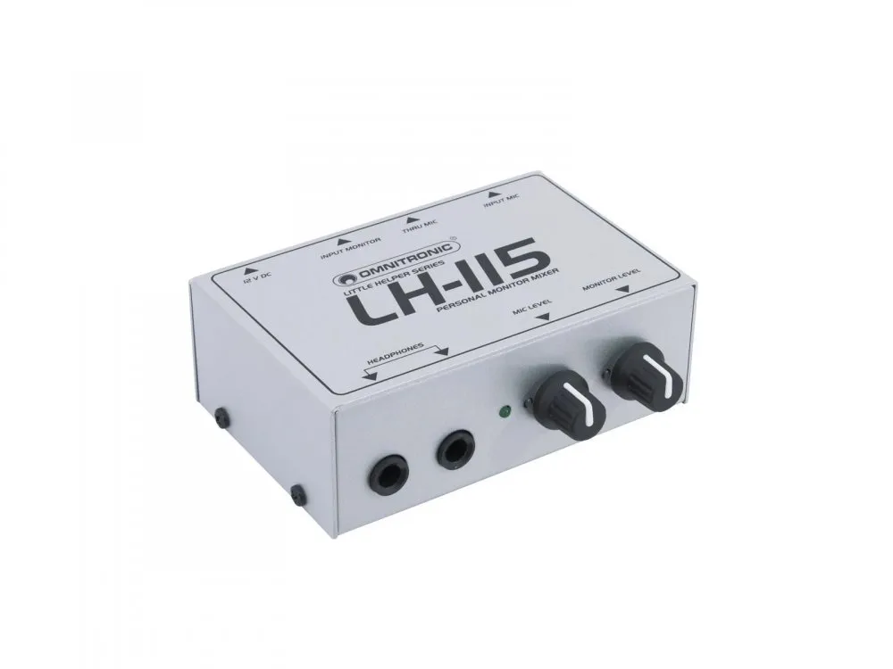Monitor mixer pro studia a pódiové stage. Monitoring mikrofonu a dalších zdrojů zvuku, mikrofonní vstup prostřednictvím XLR konektorů s úrovní kontroly, Aux vstup (6,3 mm jack) s úrovní kontroly, 2 sluchátkové výstupy (6,3 mm Jack), ovládání pomocí dodávané jednotky.