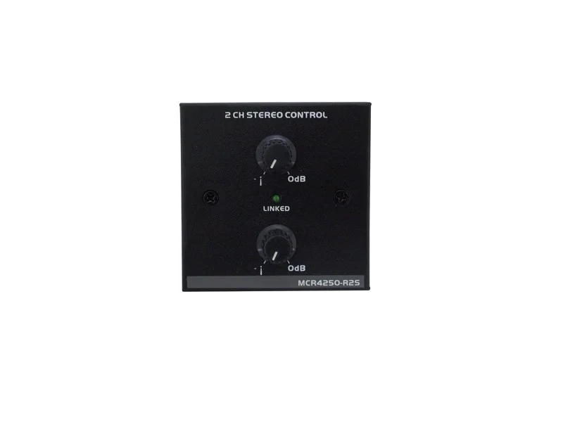 Nástěnný stereo ovladač hlasitosti VCA pro PA zesilovač MCR-4225 pro dvě zóny, výběr zóny pomocí propojky, řetězové zapojení k zesilovači přes síťový kabel až 900 m, vstup a výstup RJ45, pro zapuštěnou nebo povrchovou montáž, ocelový přední panel v černé barvě, nastavení úrovně od -80 do 0 dB; poloha 0 je OFF, montážní hloubka 50 mm.