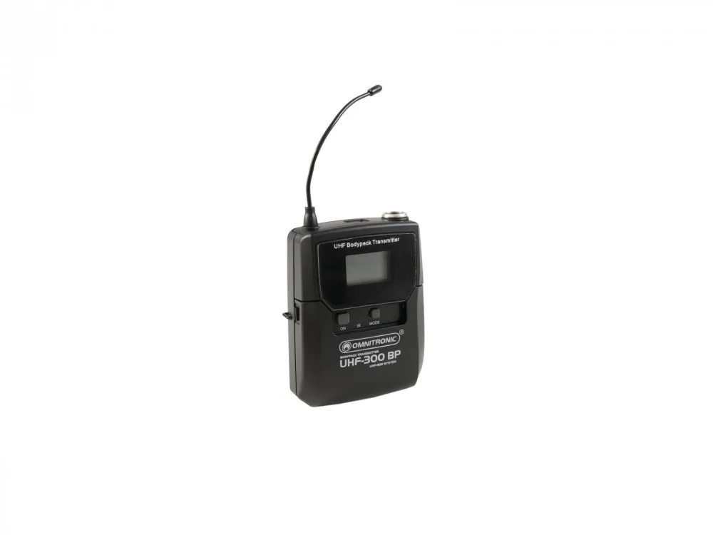 Kapesní UHF vysílač s PLL technologií ladění. Snadná a bezchybná synchronizace mezi přijímačem a vysílačem pomocí IR signálu. LCD displej pro indikaci stavu baterie a přenosové frekvence (823-832 MHz a 863-865 MHz). Napájení pomocí dvou tužkových baterií (typ AA, nejsou součástí dodávky). Funkce zapnutí, vypnutí a ztlumení (Mute).