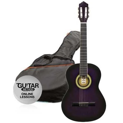 Dětská klasická kytara SPCG 12 Ashton Pack – čtvrťová velikost v paketu s povlakem. Vynikající poměr kvalita/cena. Vhodná pro všechny začátečníky – děti ve věku 2-5 let. Vrchní deska linden, krk javor, struny nylonové. Barevné provedení: TP (fialová).