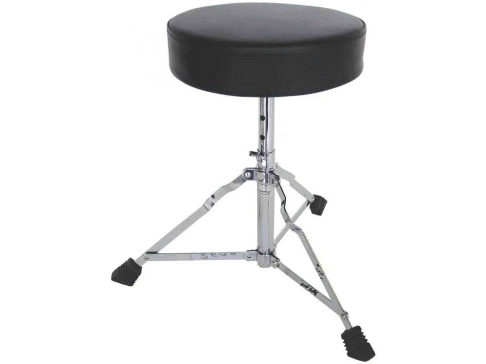 Stolička k bicím. Chromovaný hardware. Kulaté sedátko. Nastavitelná výška 39 – 43 cm.