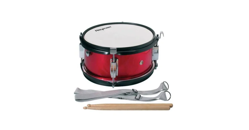 Snare buben, rytmičák na pochodování pro děti, buben je vrátane paliček a popruhů, průměr: 12″, hloubka: 7″, povrchová úprava v červené barvě