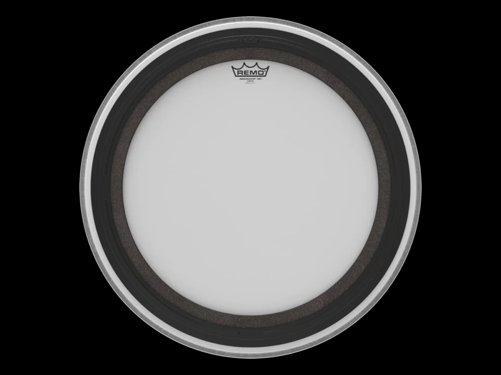 REMO Ambassador SMT Coated– jednovrstvá pískovaná blána z materiálu Mylar o tloušťce 10-mil. = 0,25mm s implantovaným externím tlumením Sub Muffl® z akustické pěny