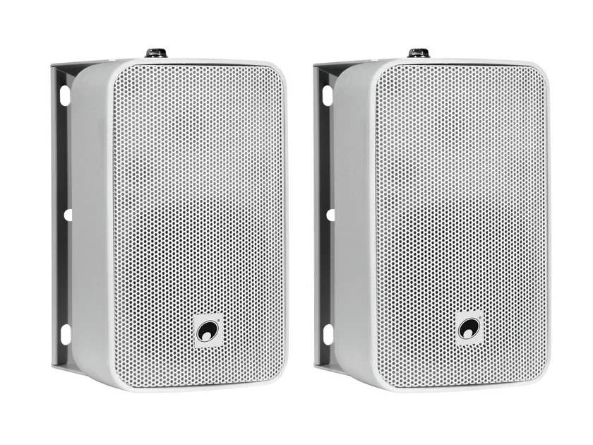 2-pásmové 100V reproduktory vhodné pro plošné ozvučení interiérů i pro venkovní použití. Možnost 16 ohmového nebo 100V zapojení s nastavením hodnoty požadovaného výkonu (10, 20 nebo 40W). Robustní provedení, třída krytí IP54, polohovatelný montážní držák. Ideální reproboxy pro ozvučení restaurací, barů, kaváren a jiných provozoven. Připojení reproboxů pomocí terminálu, dodáváno v páru v bílé barvě.