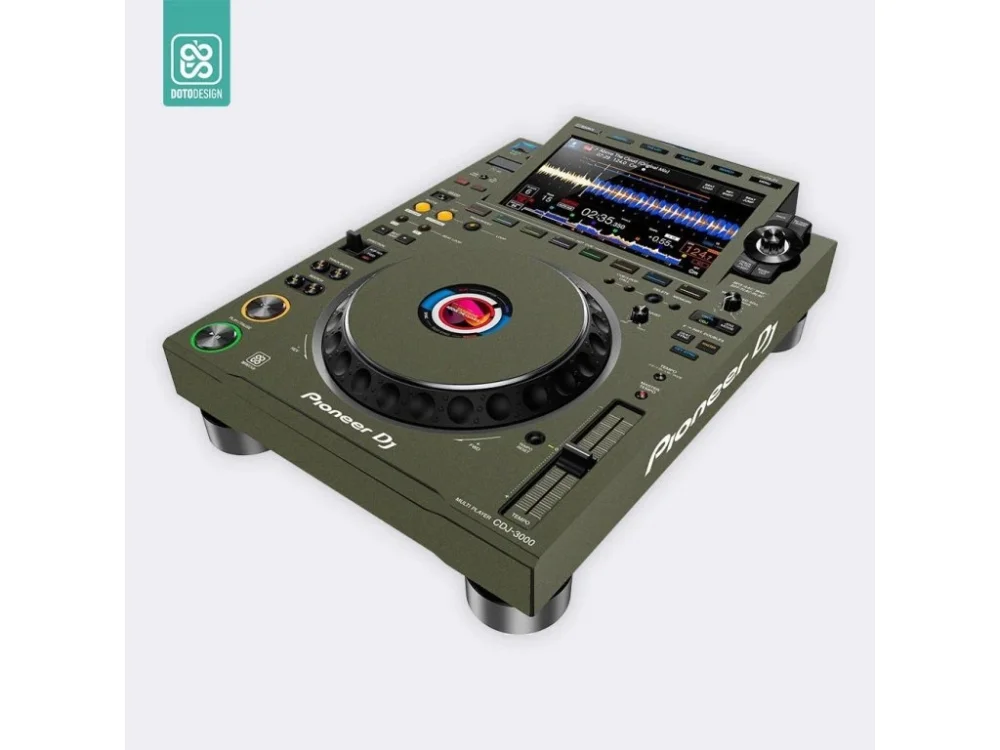 Nalepovací skin pro DJ přehrávač Pioneer CDJ-3000 v provedení FULL COLORS, barva army green (vojenská zelená).