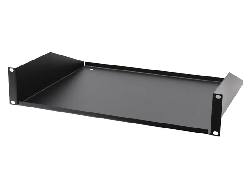 Racková police plná 2U pro přední montáž, š x v x h – 482,6 x 88,9 x 368,2 mm.