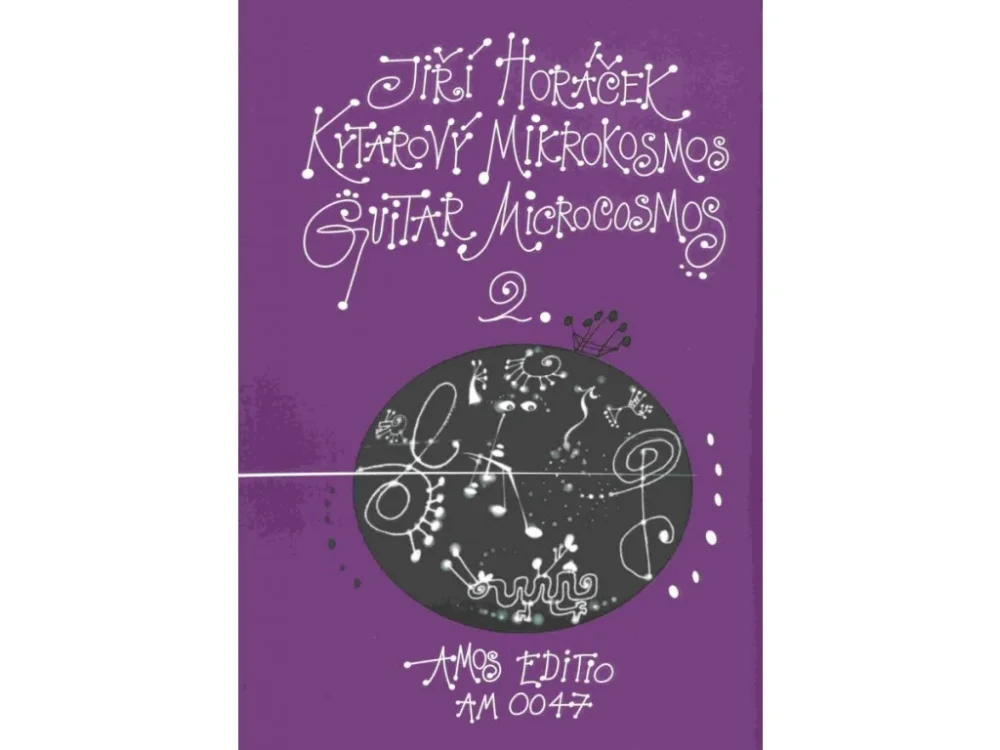 Jiří Horáček (1941) – oblíbený český skladatel a zkušený pedagog. Sešit Kytarový mikrokosmos 2 nabízí osmnáct drobných přednesových skladbiček, které jsou zároveň zajímavými etudami podporujícími rozvoj prstové techniky. Skladbičky jsou komponované v klasicko-romantickém duchu a oživené moderními rytmy. Ve cvičných variantách se mladí kytaristé navíc seznámí s charakteristickými doprovodnými figurami různých tanců – od valčíku a polky přes tango, swing, rumbu a sambu až k rocku. Hra se většinou pohybuje v I. a II. poloze a jen s občasným vybočením do poloh vyšších. Obtížnost 4+