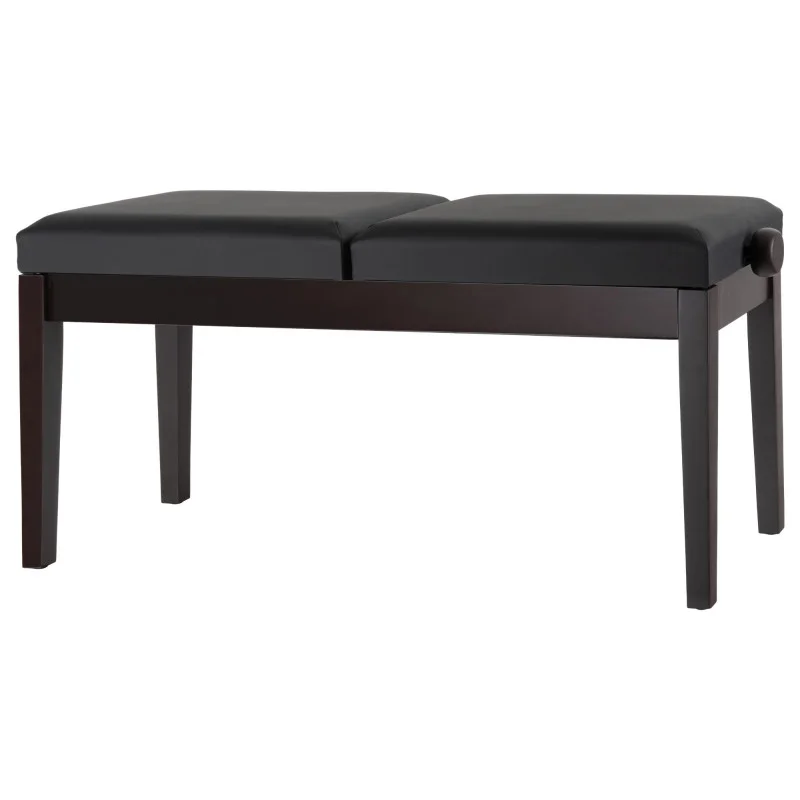 Klavírní stolička dvojitá v matném hnědém provedení palisandr s černým koženkovým sedákem výrobce Classic Cantabile. Sedáky jsou nezávisle výškově nastavitelné. Dvojitý křížový mechanismus na každé straně, pevná dřevěná konstrukce.
