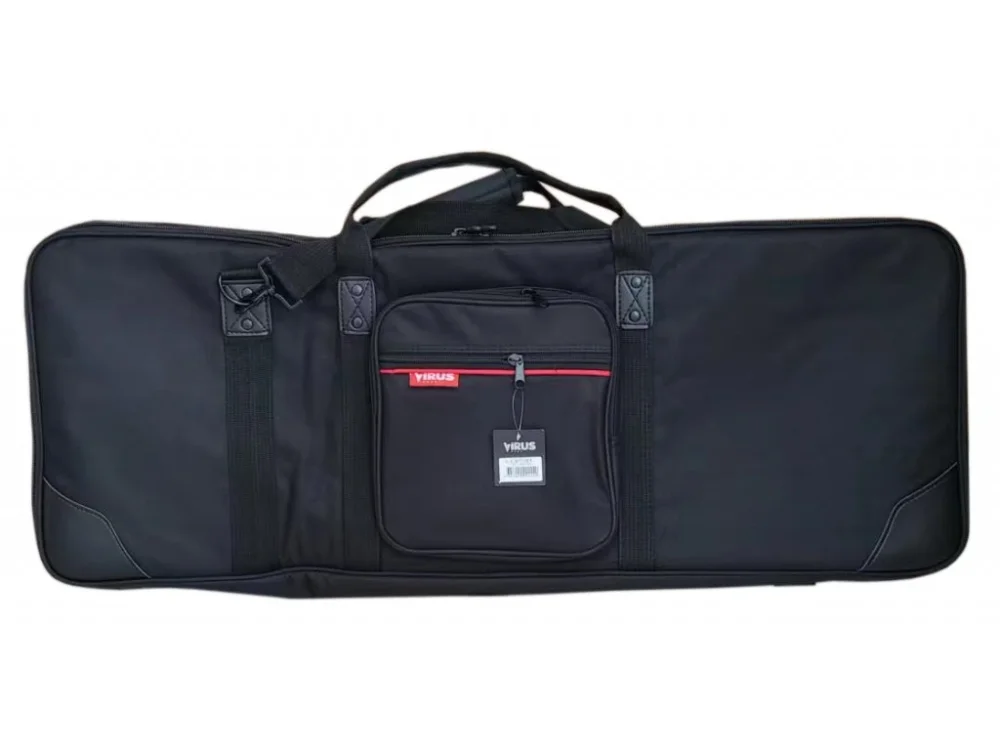 Virus VKBE61 je keyboardový (klávesový) povlak, který je vhodný pro menší modely keyboardů s 61 klávesami. Perfektně sedí na modely Yamaha PSR E373, PSR E363, PSR E353, Yamaha EZ 220 nebo Beale AK 140, AK 280, Casio CT-X5000, CT-X3000, CT-X800, CT-X700, LK-136, Kurzweil KP100, KP110 a další. Nabízí velmi silné 10 mm polstrování, které spolehlivě ochrání váš nástroj před poškozením při jeho přenášení. Je vybaven masivními zipy, řemenem pro nošení přes rameno a ušima pro nošení v ruce a také externí kapsou na příšlušenství. Je vyroben v atraktivním černo-červeném designu z voděodolné látky 600D. Vnitřní rozměry pouzdra jsou 980 x 390 x 150 mm.