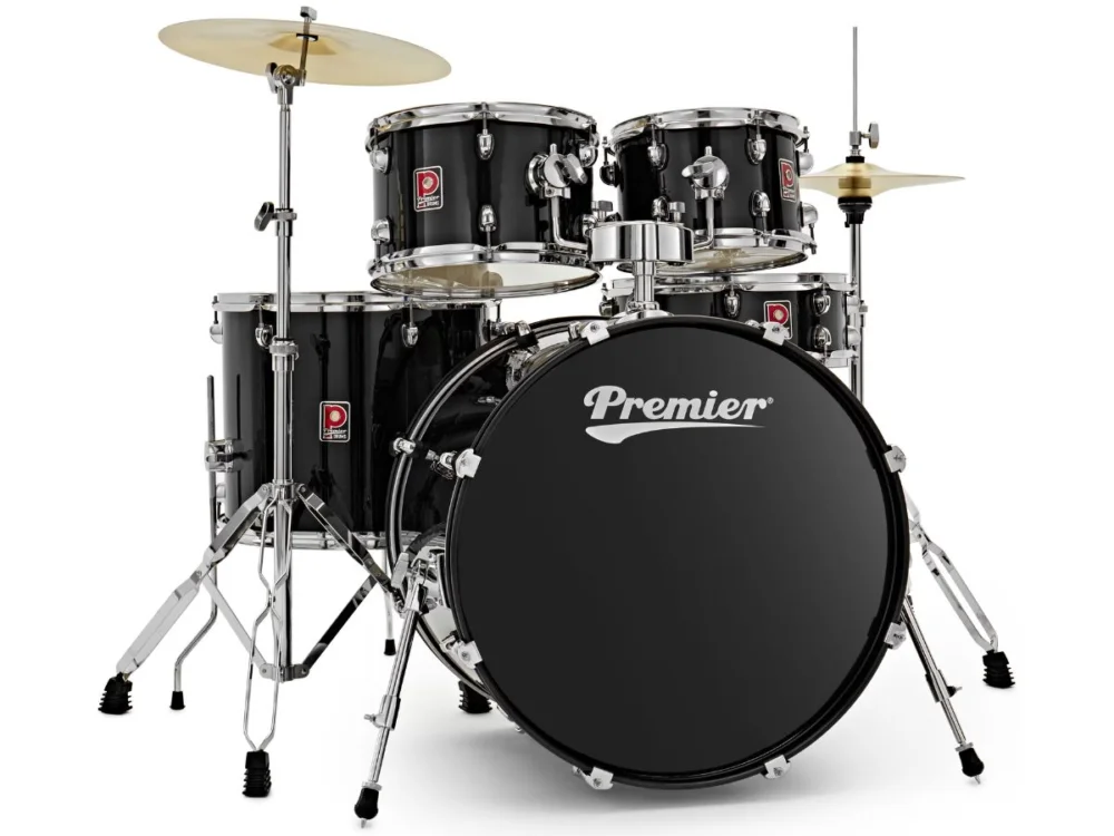 Součástí balení je také činelový set zahrnující 14″ hi-hat a 16″ crash/ride, které poskytují jasný, vyvážený zvuk ideální pro různé žánry. Pro další rozšíření zvukových možností nabízí Premier i volitelné doplňkové sady činelů, například 10″ splash nebo 20″ crash.