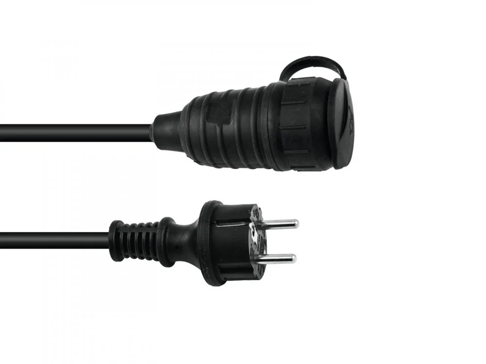 Prodlužovací kabel pro zábavný průmysl. Silný pogumovaný povrch s pryžovou bezpečnostní zástrčkou a konektorem.
