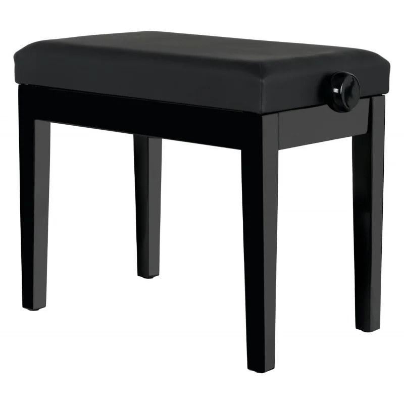 Klavírní stolička s kvalitním sedákem z umělé kůže v lesklém černém provedení s nastavitelnou výškou v rozmezí 48 – 58 cm. Dvojitý křížový mechanismus a pevná dřevěná konstrukce zajišťují maximální stabilitu.