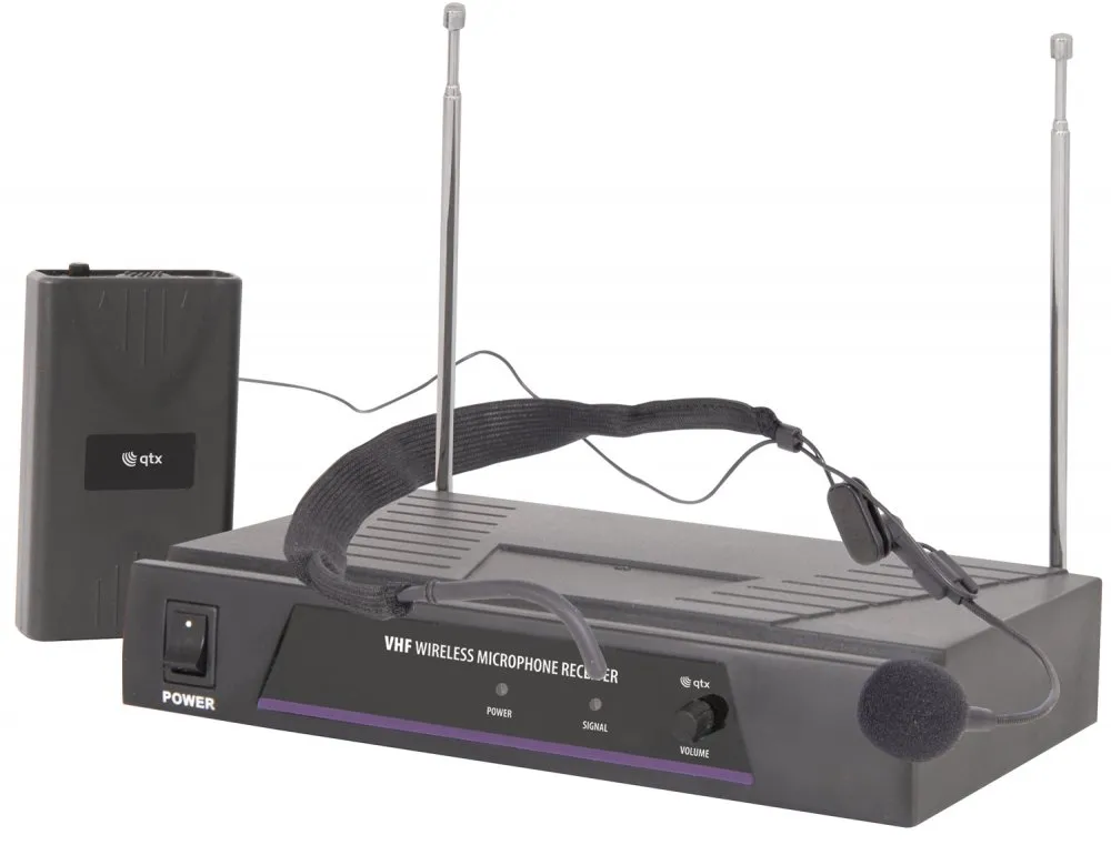 Bezdrátová mikrofonní řečnická sada obsahuje přijímací receiver, opaskový vysílač a náhlavní mikroport. Dosah až 50m, baterie a propojovací kabel jsou součástí dodávky. Přenosová frekvence VHF 174.5 MHz.