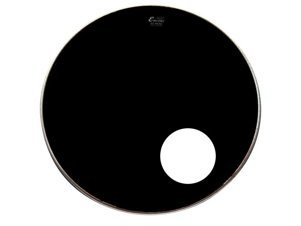 Ebony Ambassador Bass 22″. Středně silná (0,01″) plastová černá fólie, ozvučný otvor (6″/15cm), univerzální použití. Rezonanční blána, jasný a otevřený tón a dlouhý dozvuk. (kód Encore: EN-1022-ES, kód Remo: ES-1022-00-DM)