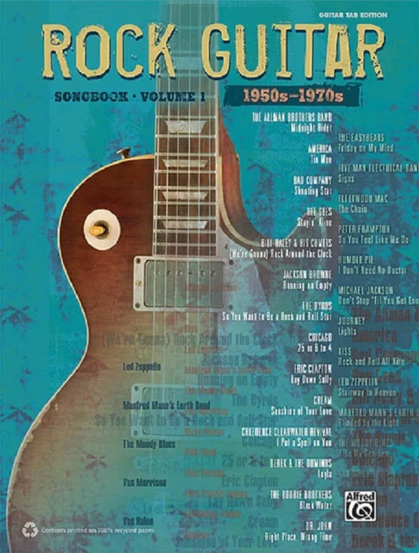 ROCK GUITAR Songbook 1 je zpěvník, který Vám přináší 43 rockových hitů z 50. až 70. let minulého století. Skladby jsou v úpravě melodická linka s textem, akordové značky, kytarová linka a tabulatura. Notový zápis je přepisem z originálních nahrávek a proto některé skladby nebo jejich části jsou v úpravě pro dvě nebo více kytar.