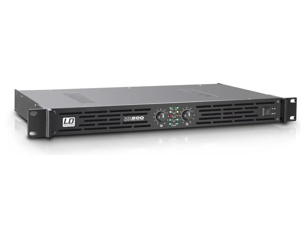 XS200 je kompaktní a spolehlivý zesilovač třídy D s výstupem 100 W na kanál. S hmotností pouze 3 kg a výškou 1U je vhodný pro všechny profesionální aplikace, kde je nutné produkt převážet nebo je k dispozici malý prostor. Je vhodný pro mobilní DJ’s, malé instalace nebo na domácí použití. Ochrany proti zkratu, přepětí či přehřátí jsou samozřejmostí. Posuvné přepínače na zadní straně umožňují výběr provozního režimu, aktivovat limiter a funkci uzemnění.
