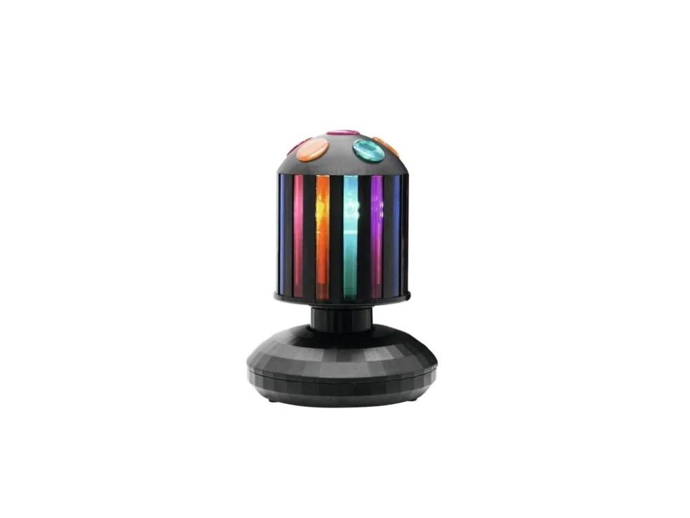 Válcový LED světelný efekt vhodný do tanečních klubů a barů, pro mobilní DJe i pro domácí zábavu. Válec s barevnými čočkami rotuje kolem své osy rychlostí 18 otáček za mnutu a projektuje do prostoru svazky barevných paprsků. Světelný efekt využívá jednu lampu s paticí E-14, která je osazena 4 Led diodami (součást dodávky). Přepínač pro zapnutí/vypnutí světelného efektu.