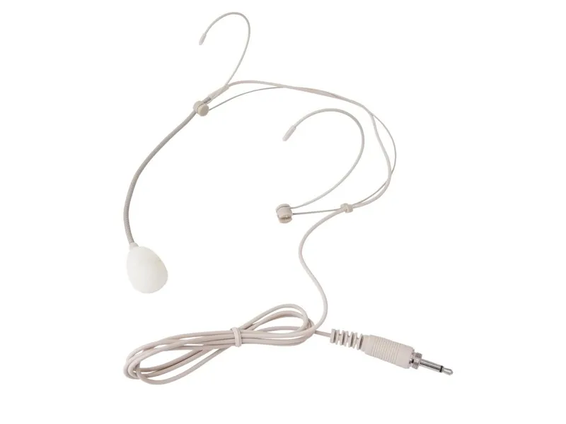 Kardioidní kondenzátorový mikrofon pro bodypack Omnitronic UHF 200 BP, lehká konstrukce, jednostranné vedení kabelu s konektorem mini jack 3,5 mm, molitanový větrný kryt, tělová barva.