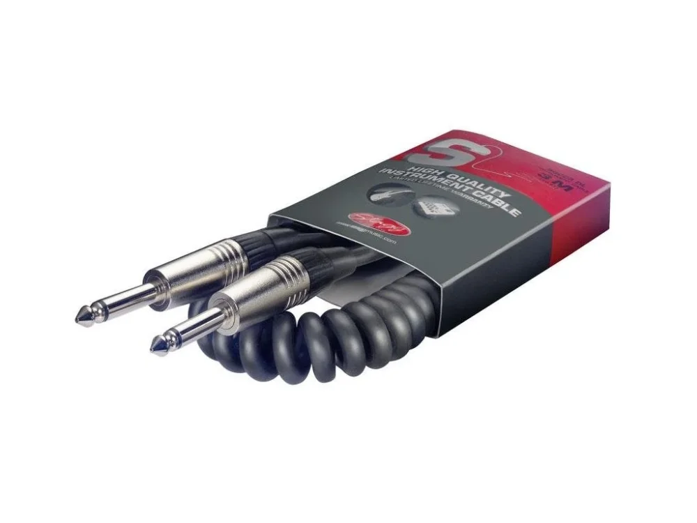 Standardní nástrojový kabel S – série, spirálovitý, jack zástrčka/jack zástrčka. Délka 3 m, průměr 6 mm. Barva černá. V souladu s RoHS.