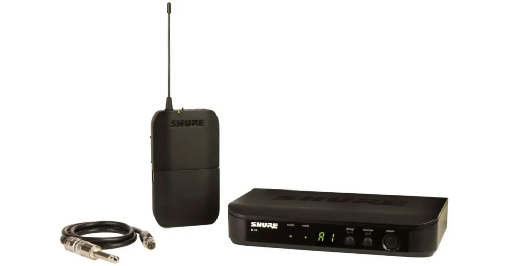 kompletní bezdrátový systém, pro nástroje, řada PG Wireless, až 150 volitelných frekvencí, provoz až 14 hodin, dosah 100 metrů, kabel WA302, bodypack BLX1, přijímač BLX4, výstup Jack 6.3 a XLR, v ceně 2x AA baterie