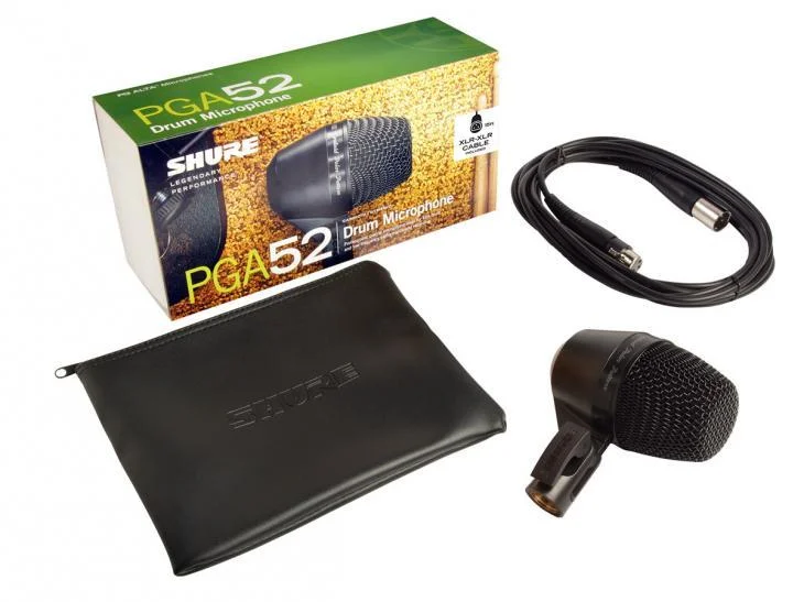SHURE PGA 52 – je kvalitní dynamický kardioidní mikrofon pro basový buben, přinášející vynikající poměr cena/výkon. Uplatní se jak při živém ozvučení, tak při domácím nahrávání. Díky otočnému kloubu a rychloupínací matici lze mikrofon jednoduše připevnit na stojan.