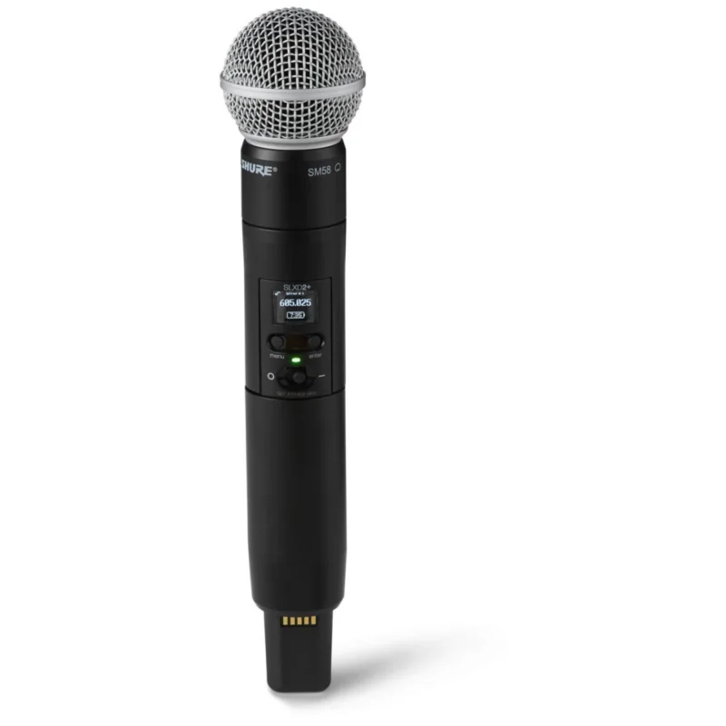 SLXD2+/58-S50 je bezdrátový ruční vysílač od výrobce Shure. Představuje profesionální vysílač s integrovanou mikrofonní vložkou SM58 určený pro bezdrátové připojení k přijímačům série SLX-D+. Kombinuje tradiční výkon legendárního mikrofonu s moderní bezdrátovou technologií, která zajišťuje jasnou a transparentní přenosovou kvalitu. Díky rozšířenému ladicímu pásmu až 138 MHz a automatickému řízení frekvencí systém minimalizuje rušení a usnadňuje koordinaci kanálů i ve frekvenčně vytíženém prostředí. ShowLink Ease umožňuje ovládání vysílače bez fyzického kontaktu, což výrazně zvyšuje komfort nasazení při živých vystoupeních, konferencích či broadcastových aplikacích.
