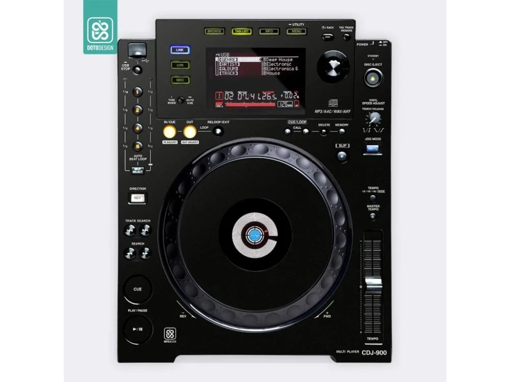 Nalepovací skin pro DJ přehrávač Pioneer CDJ-900 v provedení FULL COLORS, barva black (černá).