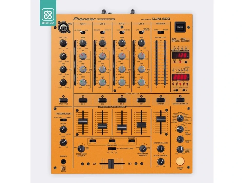 Nalepovací skin pro mixážní pult Pioneer DJM-600 v provedení FULL COLORS, barva sunset orange (oranžová).