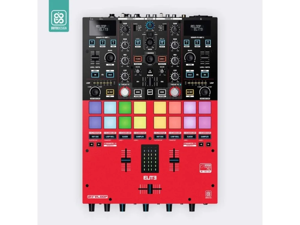 Nalepovací skin pro mixážní pult Reloop Elite v provedení COLORS DVS, barva red (červená).