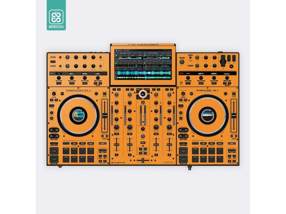 Nalepovací skin pro MIDI kontroler Denon Prime 4+ v provedení FULL COLORS, barva sunset orange (oranžová).