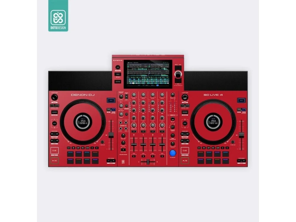 Nalepovací skin pro MIDI kontroler Denon SC Live 4 v provedení FULL COLORS, barva aurora red (červená).