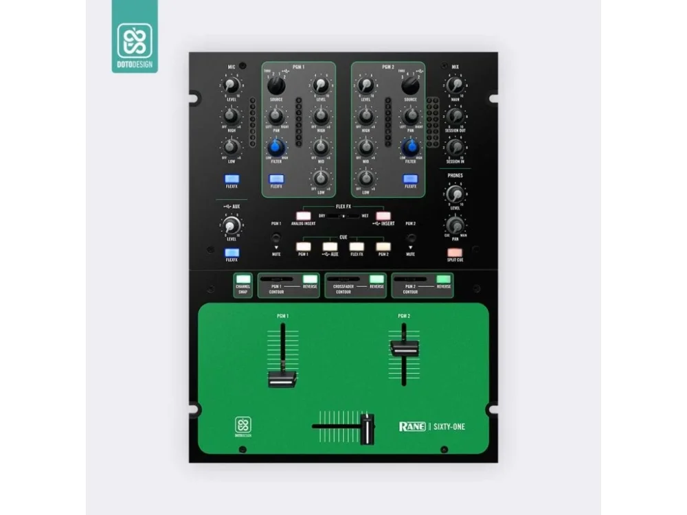 Nalepovací skin pro mixážní pult Rane Sixty-One 61 v provedení COLORS DVS, barva green (zelená).
