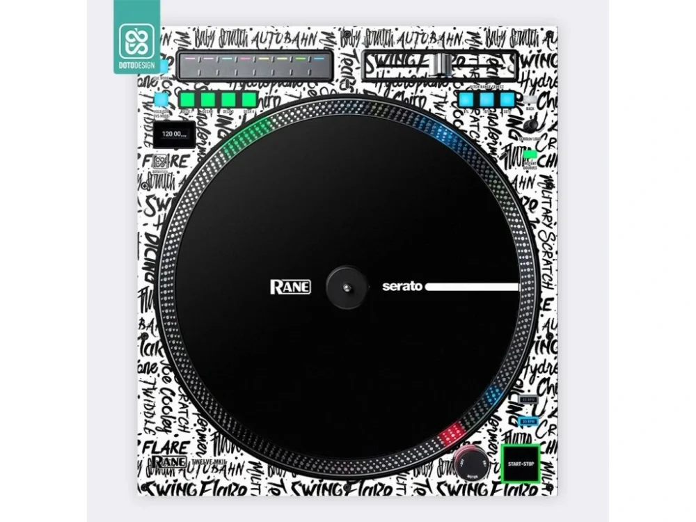 Nalepovací skin pro DJ gramofon Rane Twelve MK2 v provedení SCRATCH STYLE, barva white (bílá).