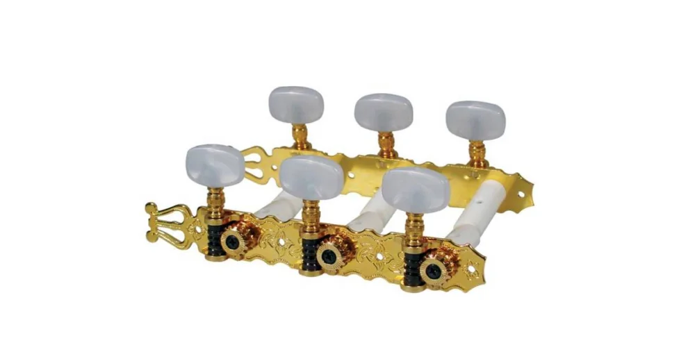Ladící machanika pro klasickou kytaru, nylonová hřídel, 3x levé + 3x pravé, 70 mm, zlatá barva, perlové hlavičky