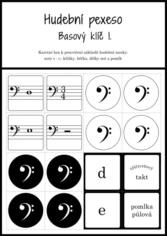 Sleva Hudební pexeso – Basový klíč 1 – 72 kartiček pro zábavnou výuku hudební nauky